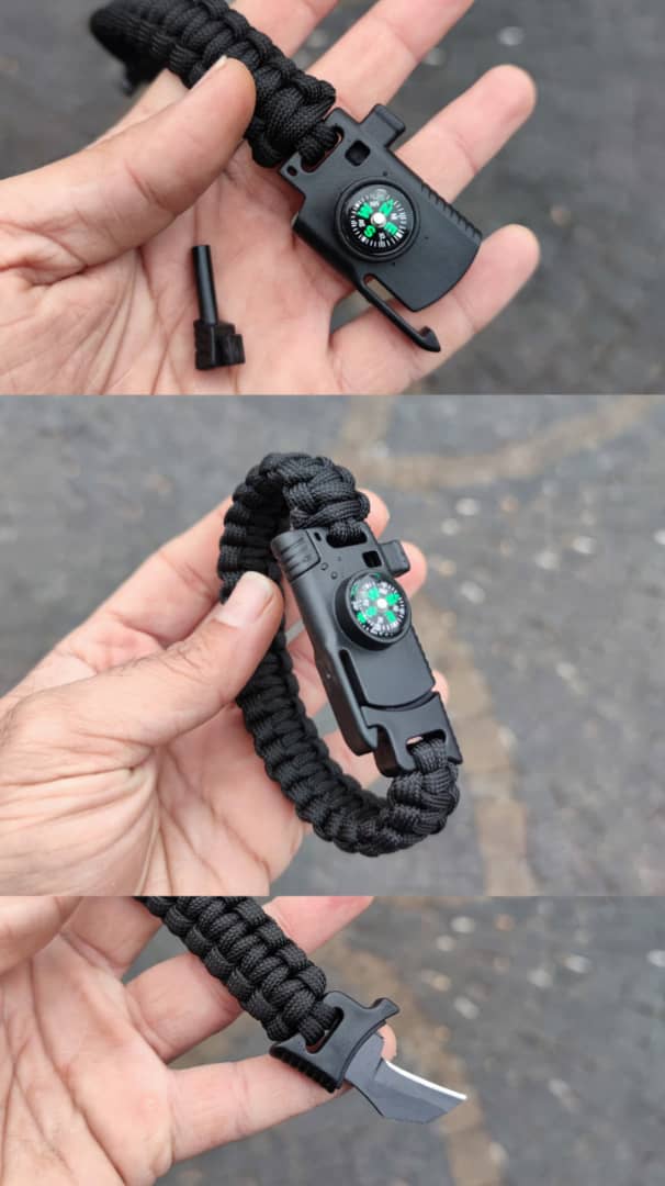 دستبند نجات پاراکورد دارای قطب نما، چخماق، سوت نجات، چاقو طناب ۲ متر