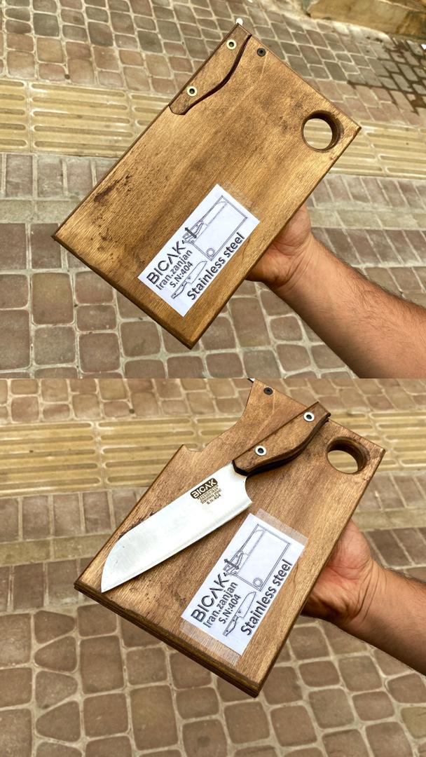 تخته گوشت بهمراه چاقو استیل مناسب کمپ و سفر و آشپزخونه