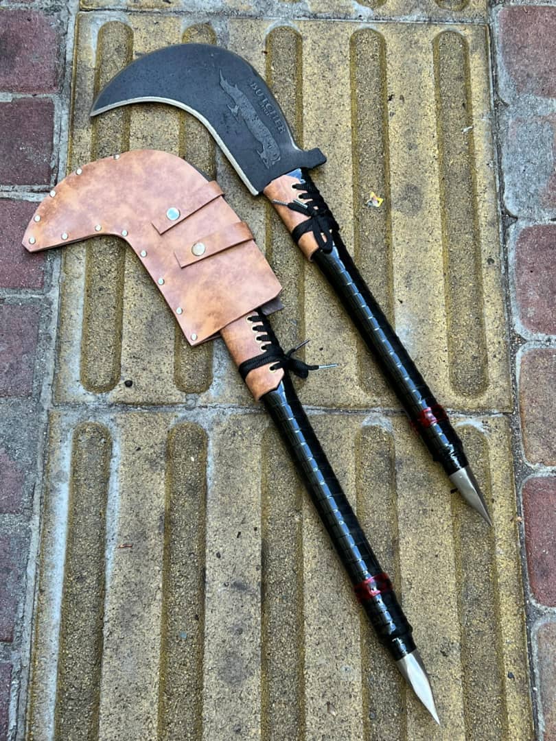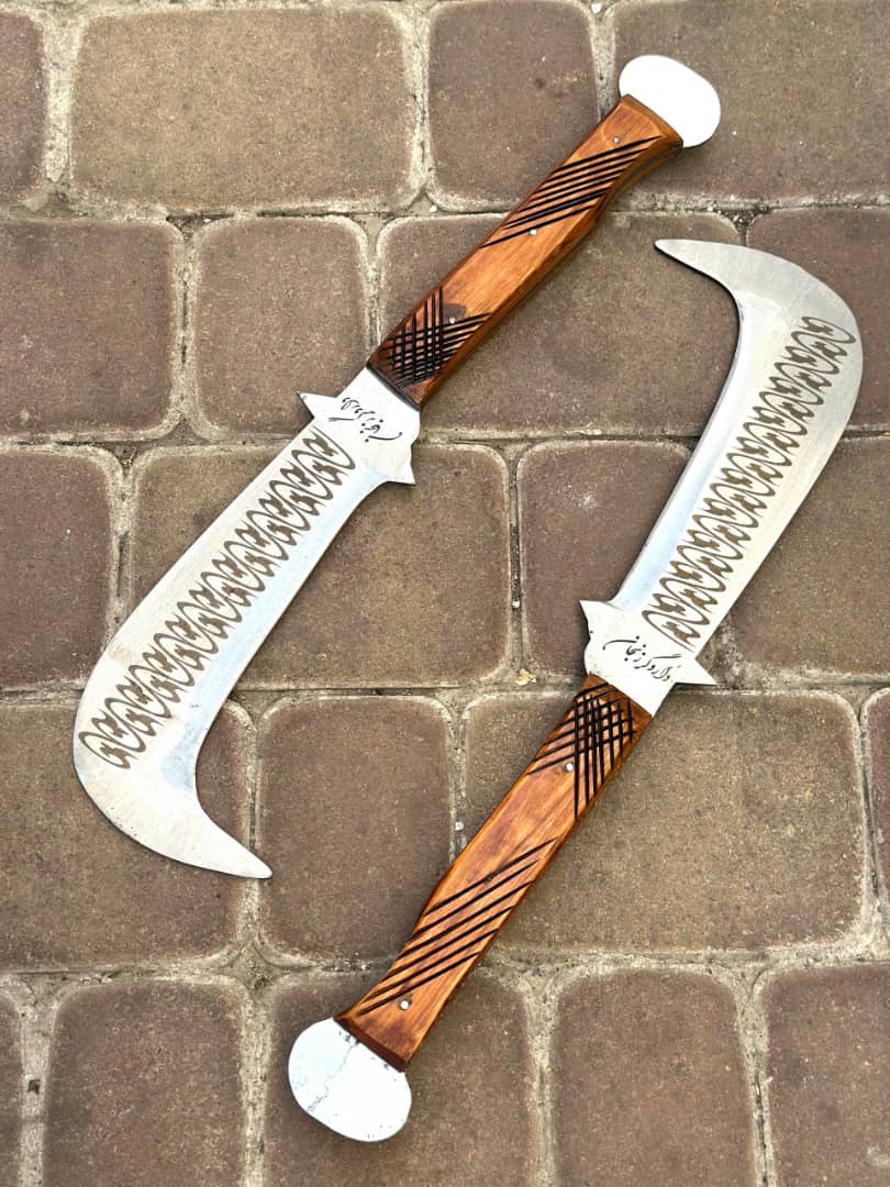 داس سر نیزه دار دولب تیز تیغه براق بهمراه کاور طول کار ۵۵ سانت