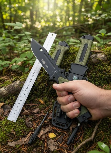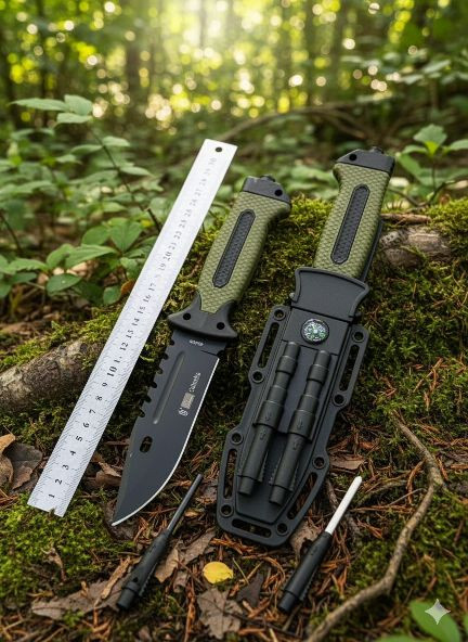 | ابزارهای همراه (بقای در طبیعت) | سنگ چخماق (Fire Starter)، سوت نجات، قطبنما (در برخی مدلها)، سوهان تیزکننده (در برخی غلافها). |