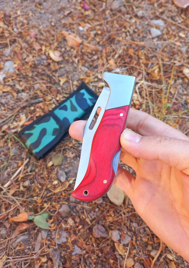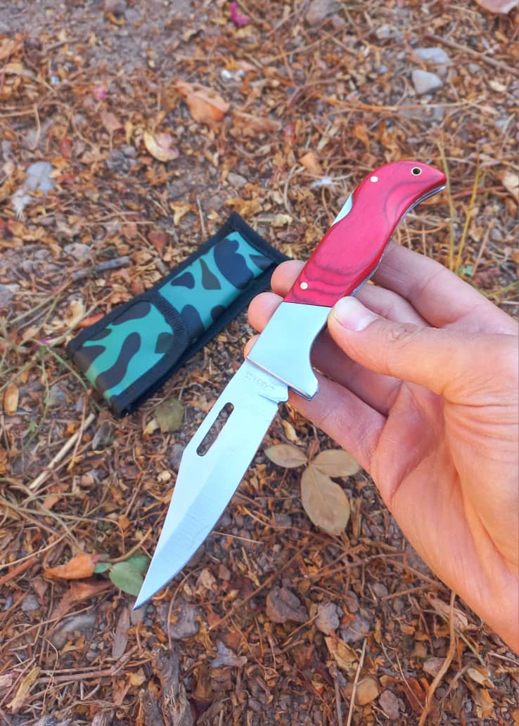 چاقو جیبی پشت ضامن وارداتی دسته چوبی بهمراه غلاف