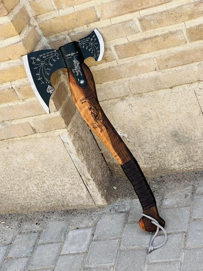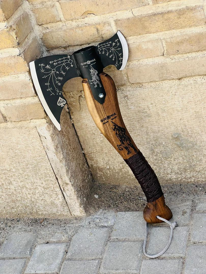 تبر وایکینگی کریتوس زنجان سایز کوچک تبر گاد اف وار مدل GodWar طول کار 50 سانت تیغه بسیار قوی و مقاوم مخصوص کمپ و کوهنوردی
